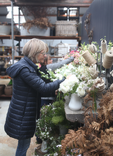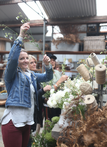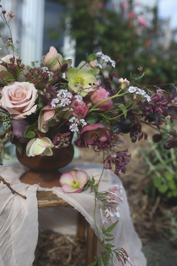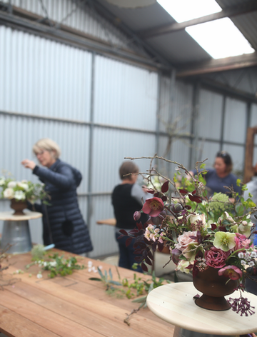 The afternoon began with a stroll through the Cutting Garden before returning to the workshop where Abbey demonstrated an urn arrangement using a mix of spring seasonal blooms. The flowers used included ranunculi, hellebores, stock, tulips, foxgloves, may, buperleum, poppies, jasmine, queen anne’s lace, silene and grevilleas.