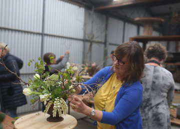 Each person had a rusty footed urn to create their arrangement in. They began with a framework of bare mulberry branches and filled in their design with beautiful array of spring blooms. Everyone had created something uniquely theirs and guests thoroughly enjoyed looking at each other’s designs and colour choices.